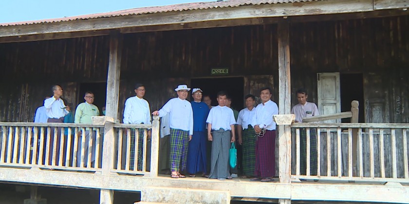 And then, the state chief minister and party inspected around the situations of damaged primary school buildings in Da Bat Yan village and Kazuu village and facilitated the preparations tasks before school opens and activities of school enrollment.