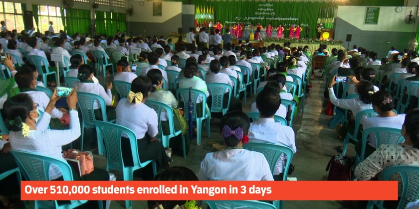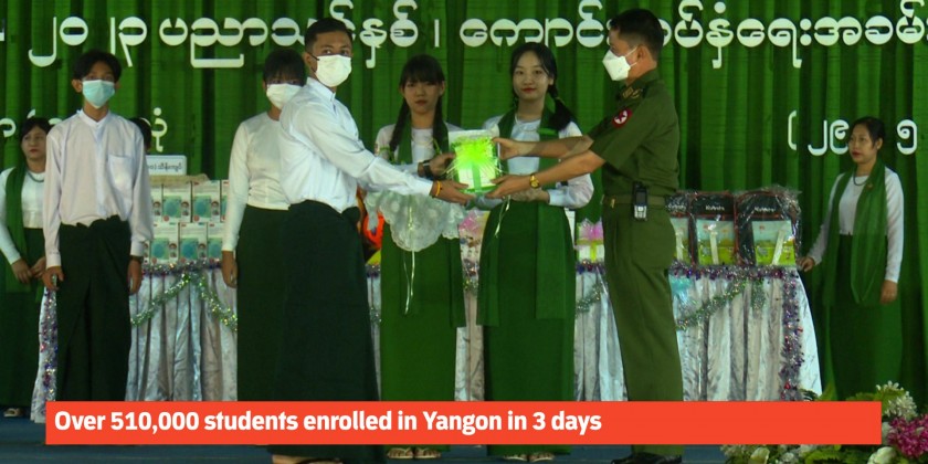 Kyaw Moe Tun, Deputy Director General, Yangon Region Education Office said "The number of enrolled students in Yangon Region has resulted in a significant increase compared to previous year. The number of enrolled students at previous year is about 580,000 students and more than 510,000 students have been enrolled in just 3 days, accounting for the number of enrolled students this year is likely to be higher than previous year."