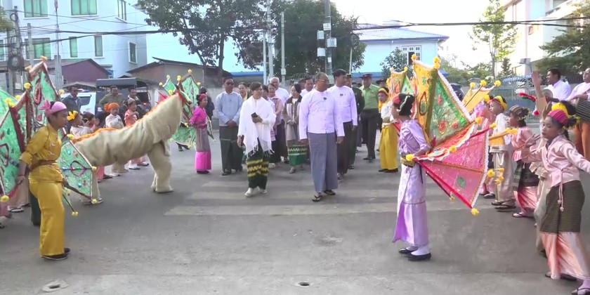 Chief Minister U Aung Aung and Ministers of State Security and Border affairs, and Social Affairs opened the event by cutting the ribbon and they presented honorary cash to the performance troupes.