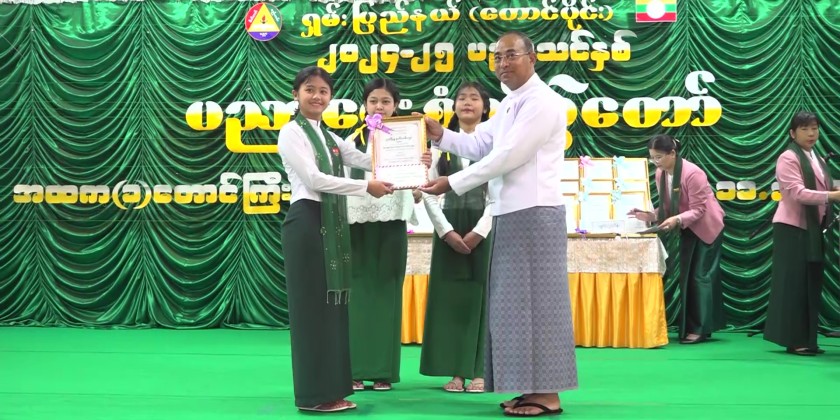 During the ceremony, prizes were awarded to the winners at Central and State level Intellectual and Physical competitions. This was followed by performance of songs and dances and Myanmar traditional martial art demonstration by the students.