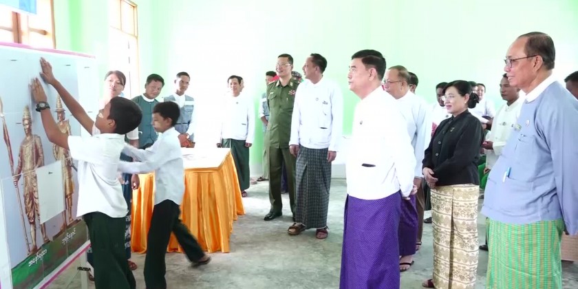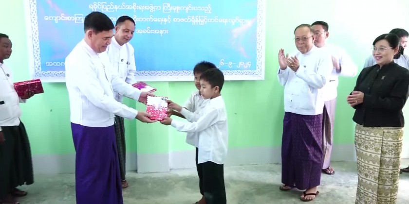 They provided teaching aid and refreshments, while also encouraging students as they explored the library. Additionally, the Chief Minister donated books and periodicals to the school library on behalf of the Rakhine State Government.