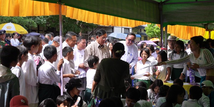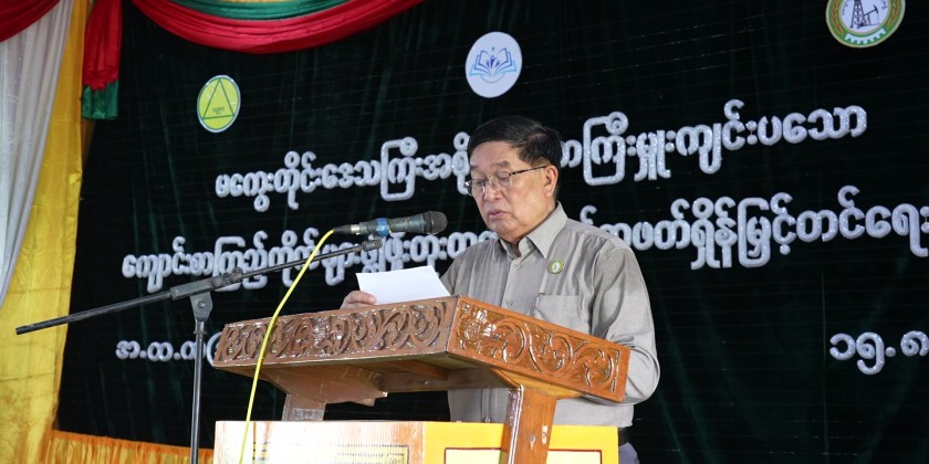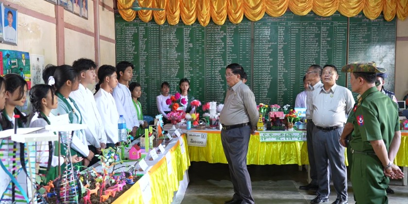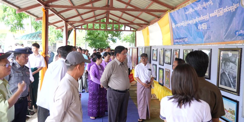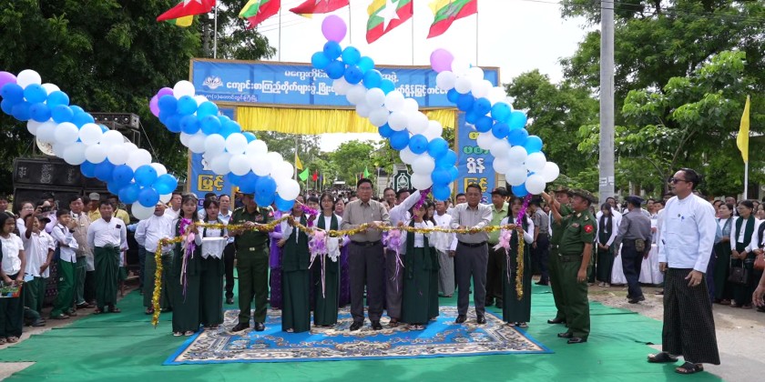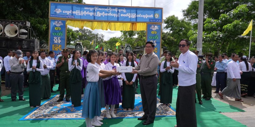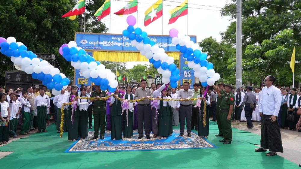 Magway Region Chief Minister U Tint Lwin attended School Library Development and Reading Habit Promotion Campaign at Basic Education High School No. (1) in Taungdwingyi Township on Saturday. They then cut the ceremonial ribbon for event’s inauguration and presented cash rewards to the performing Pom Pom dance troupes.
