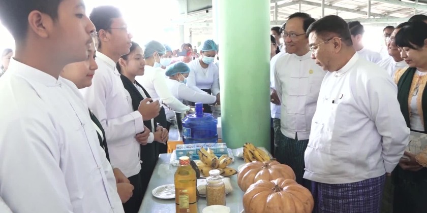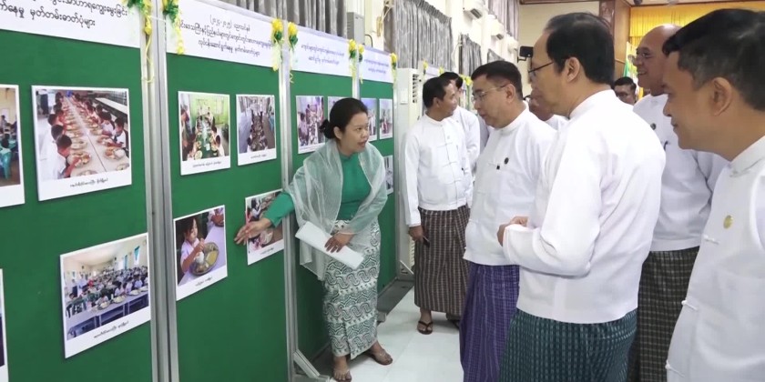 After that, a group photograph was taken, and participants visited the 2024-2025 academic year's school health and nutrition photo exhibition. Later, the Union Ministers and guests visited No.11 Basic Education High School in Nay Pyi Taw, where health workers, teachers, and parents collaborated in selecting food groups for lunch, with an emphasis on reducing nutritional deficiencies and ensuring food safety.