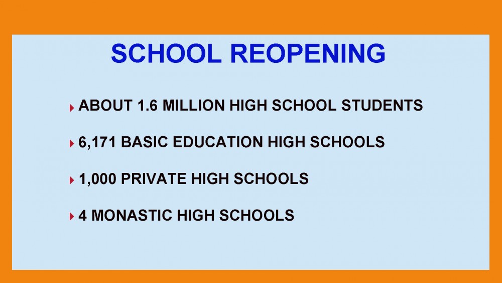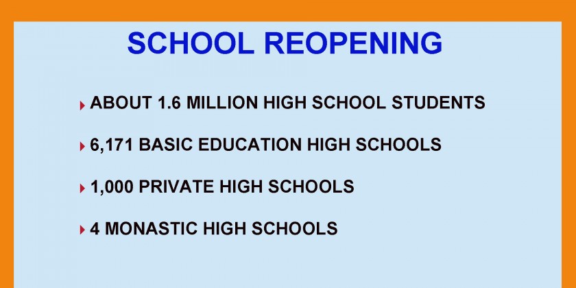 There are 6,171 Basic Education High Schools, 1,000 Private High Schools and 4 Monastic High Schools to be reopened nationwide.