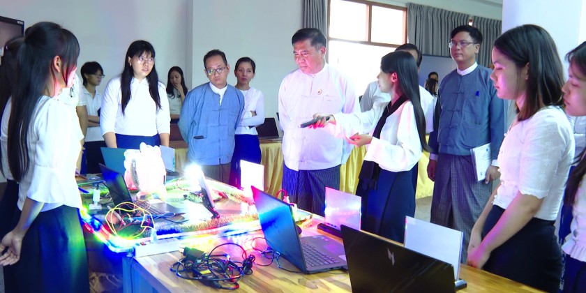 It was followed by sector wise discussions of the attendees on further implementations of science, technology and innovation measures. The meeting was concluded with the closing remarks of the Union Minister. Later, the Union Minister visited Naypyitaw State Polytechnic University and oversaw the arrangements and preparations for Engineering & ICT Project Show 2025 which is set to be held on 12th September at the university.