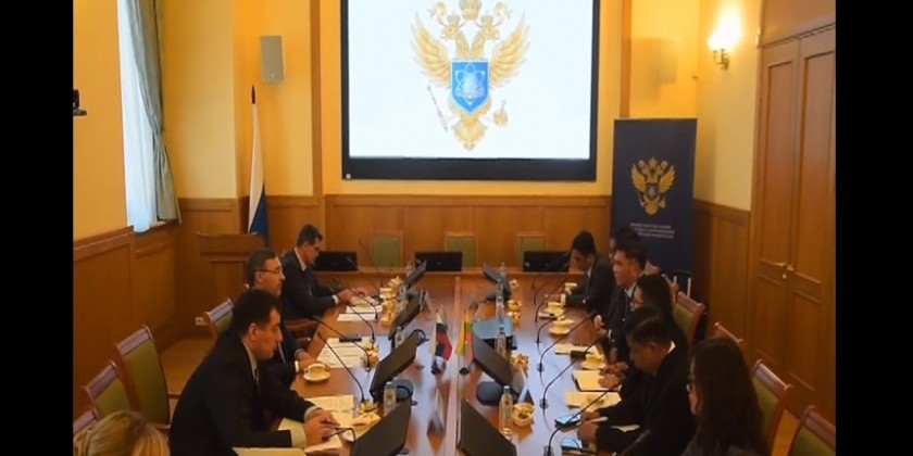 Myanmar delegation led by the Union Minister for Science and Technology Dr. Myo Thein Kyaw who are currently in Russian Federation to attend the research exploratory journey and 12th ATOMEXPO 2022 accompanied by Myanmar Ambassador to Russian federation U Lwin Oo and officials paid courtesy call to the Minister of Science and Higher Education H.E Valery Falkov in the morning on November 14.