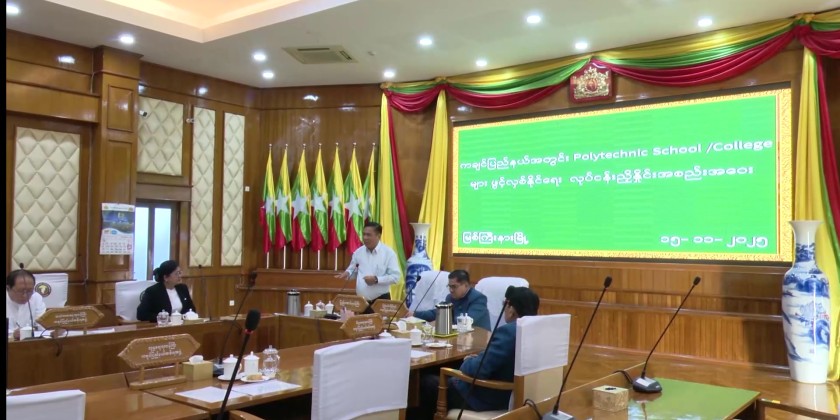 On November 15, the Union Minister held a coordination meeting at the Kachin State Government Office, discussing plans to open Level-4 courses for students who did not pass university entrance exams, helping them gain practical skills linked to local job opportunities.