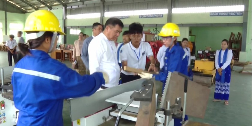 In meeting with the Principal, teachers and staff, the Union Minister urged all to nurture the youths to be skillful in creativities and innovations for human resource development. They then inspected lecture rooms, practical rooms, and computer rooms, teaching aid, library and workshops. They then proceeded to Computer University and observed the classrooms, giving instructions on effective usage of ICT technology for economic development.