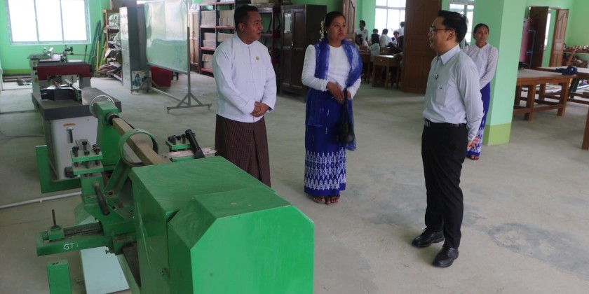 Then, the Deputy Minister cordially met with the students and encouraged them to become qualified professionals who can serve as a driving force in nation’s sustainable development process. Subsequently, the Deputy Minister visited Government Technical Institute (Kyaukse), and inspected the workshops.