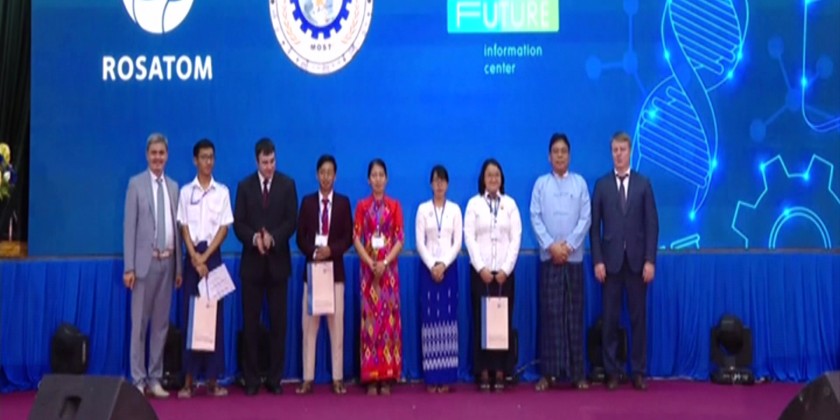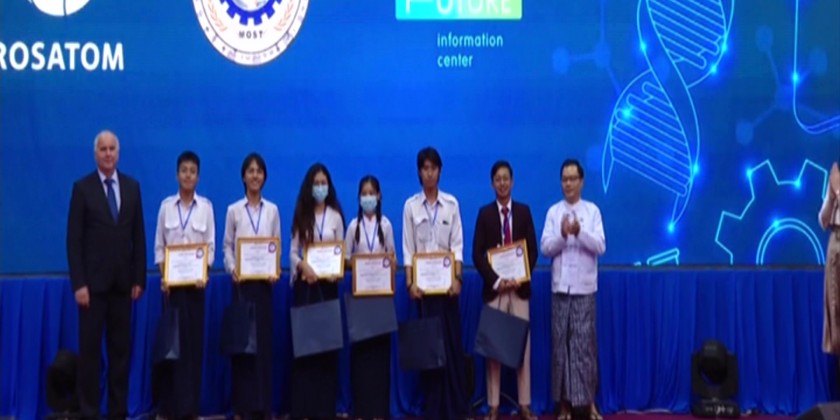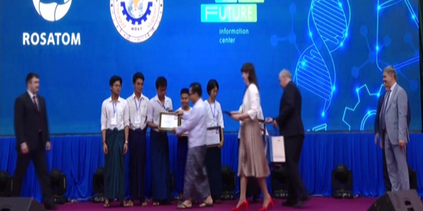 Deputy Minister Dr Aung Zeya and Director of ROSATOM International Cooperation Department Mr. Andrey Belyakov presented awards to the three winning teams.