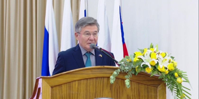 First, documentary videos of the Science Festivals held in 2023 and 2024 were shown. Union Minister Dr. Myo Thein Kyaw delivered the opening address, followed by a honorary speech by Mr. I.K. Azizov, Ambassador of the Russian Federation to Myanmar. Students from NSPU and Yamethin Technological University then performed traditional Myanmar cultural dances.