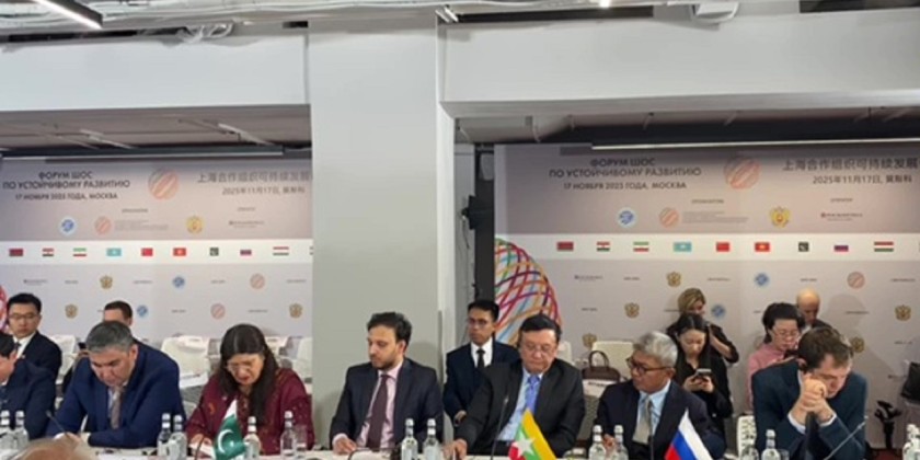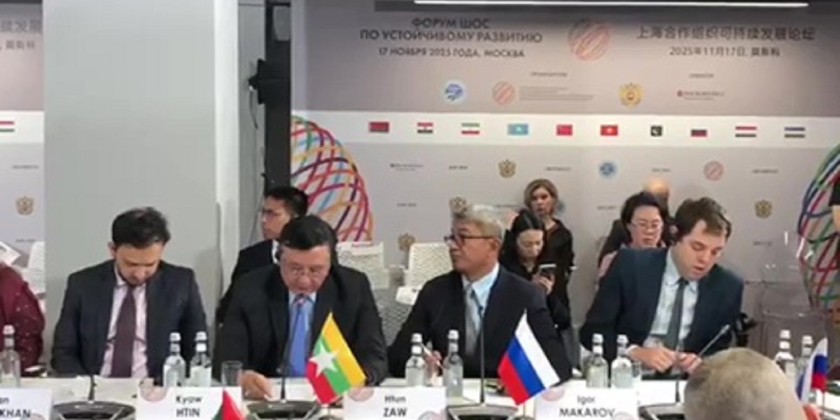 On November 17, the Deputy Minister participated in the "Achieving Sustainable Development Goals in SCO member states and partner countries" section of the Forum, held at the Moscow ESG Center. During his discussion, the Deputy Minister stated that Myanmar is prioritizing the implementation of the United Nations' 2030 Agenda for Sustainable Development and its 17 Sustainable Development Goals (SDGs). He explained that, in line with the "Leave No One Behind" principle, Myanmar is integrating the SDGs into its national development plans and policy frameworks for implementation. He noted that SCO member states are countries with diverse experiences, rich resources, and shared aspirations. Therefore, the SCO is a highly suitable organization for working collectively towards building a more stable, prosperous, and sustainable region. He further expressed that Myanmar will work closely with SCO member states and dialogue partners within the SCO cooperation mechanism.