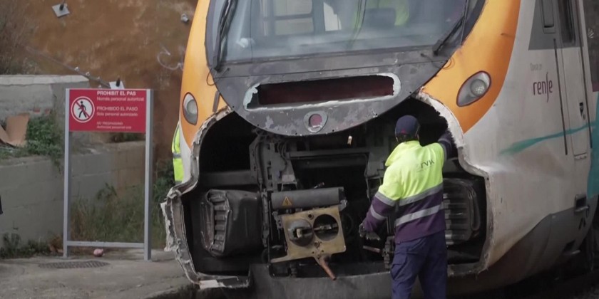 Spanish Civil Protection said one train was stopped when the second train failed to brake on time and ran into it from behind at around 8 a.m. A total of about 800 passengers were on the two trains and nobody was trapped. The Spanish Transport Minister said the causes of the incident were being investigated.
