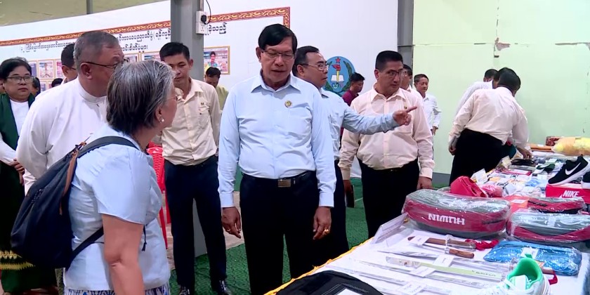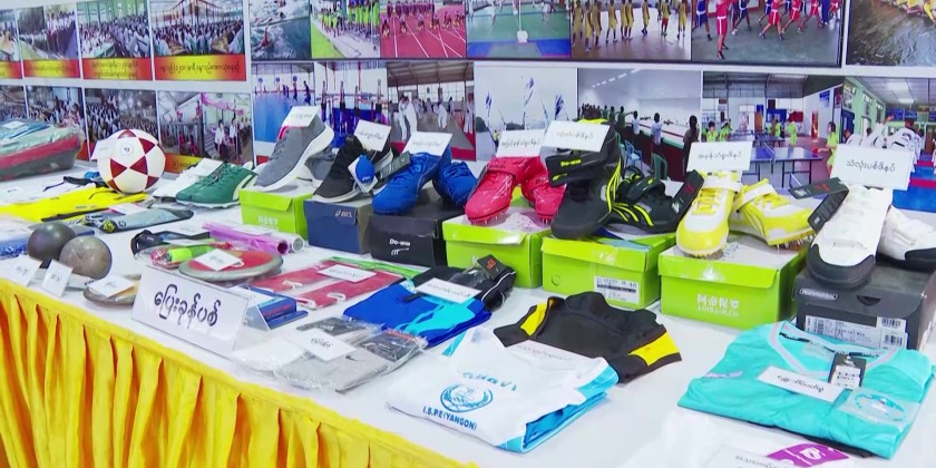 It is reported that Chief Minister U Soe Thein and officials warmly greeted the students and toured the sports equipment exhibits displayed by the Institute of Sports and Physical Science (Yangon).