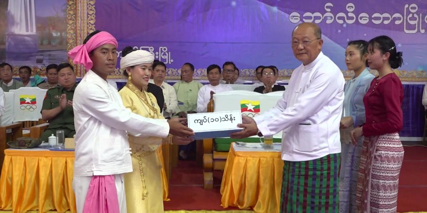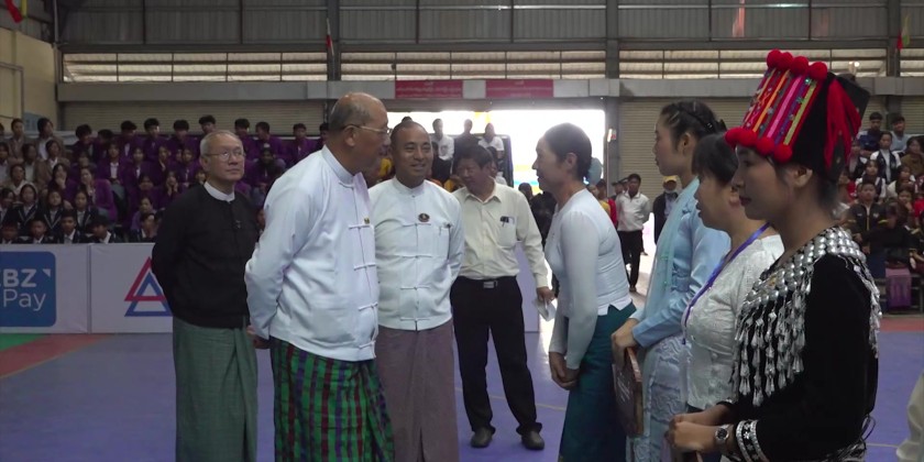 The Union Minister, Chief Minister, and state ministers warmly greeted the participating athletes and presented cash awards to the ethnic traditional dance troupe and the Drum and Bugle Corps. They also watched the matches between the Nay Pyi Taw Council Men’s Volleyball Team and the Kayah State Men’s Volleyball Team, in which the Nay Pyi Taw team won by two matches to one out of three.