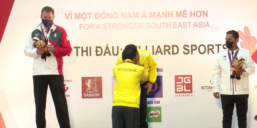 Myanmar Billiard player Pauk Sa won a gold medal at the English Billiards Individual Finals event of the 31st SEA Games, held at the Ha Dong Stadium in Hanoi on Tuesday.