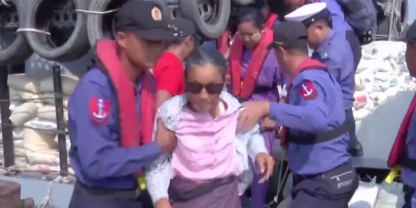 The Tatmadaw Sea-going Mobile Hospital Vessel (Thanlwin) left ThaByuChaing Village for KyaukNiMaw Village of Rambye Township to provide healthcare services to the local residents.