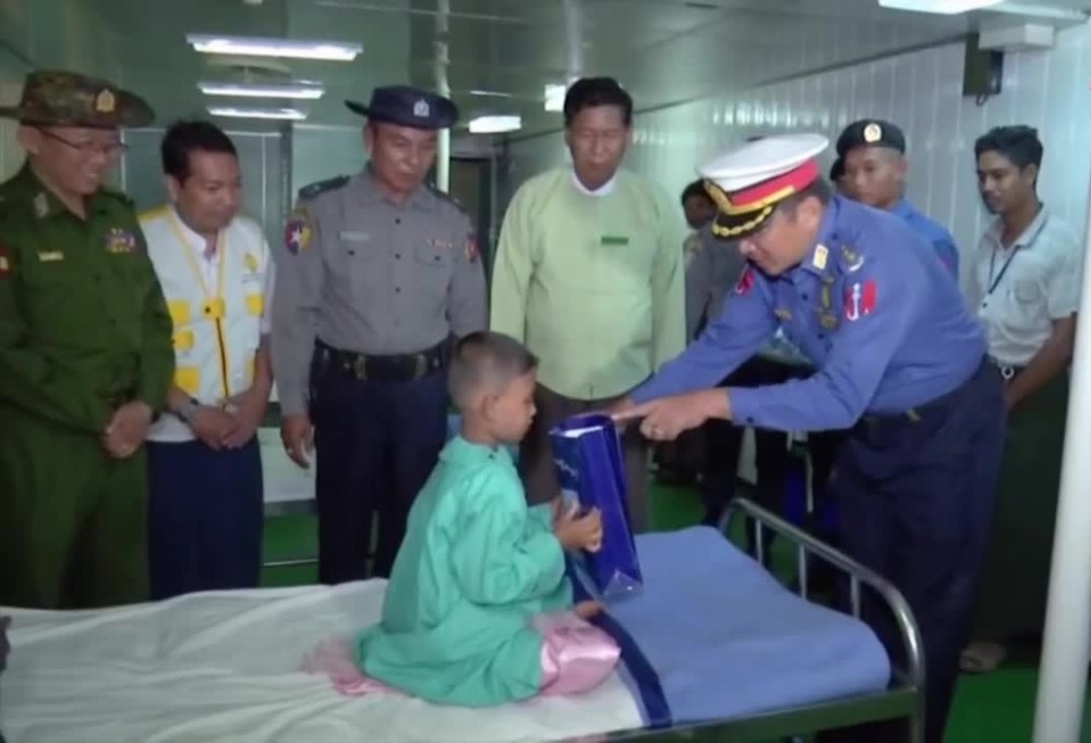 The Tatmadaw Sea-going Mobile Hospital Vessel (Thanlwin) with the Medical Teams comprised of specialists, medical officers and nurses from Tatmadaw and the Ministry of Health onboard is on the tour to provide medical services to the residents of Rakhine State Coastal region.
