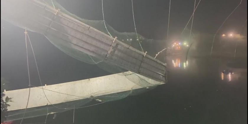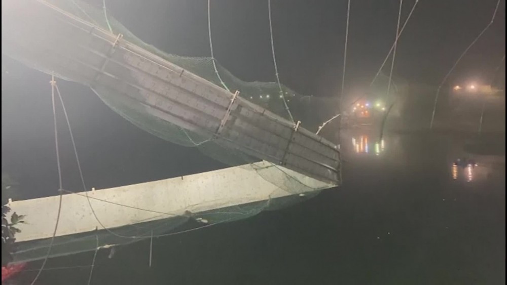 Hundreds of people on the structure at the time fell into the river in Morbi district, and it was feared the death toll would rise further.