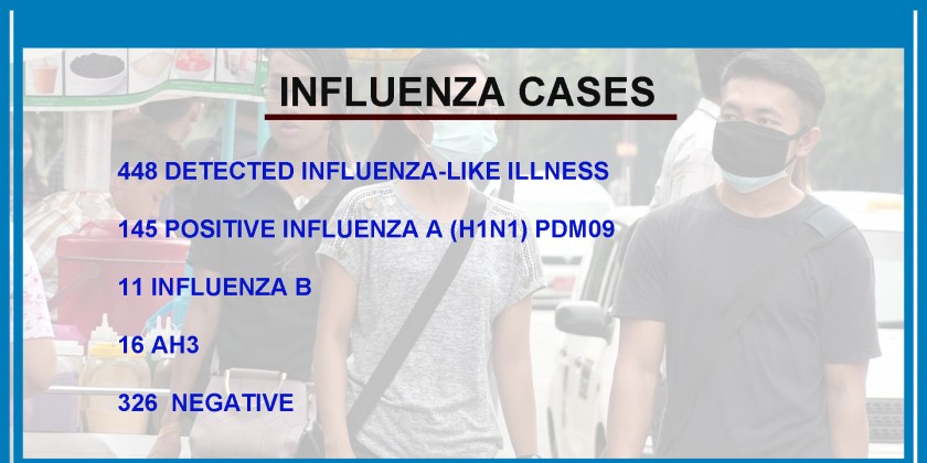 During January to 7th July 2019, 488 total cases of influenza like illness and severe acute respiratory infection were tested for influenza at Nation Health Laboratory. Among them, 145 cases were confirmed as H1N1 cases, and 103 of its are experiencing in Yangon.