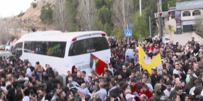After leaving Israeli Ofer prison carrying 114 Palestinian prisoners as part of prisoners swap and a ceasefire deal in Gaza between Hamas and Israel, the freed Palestinian prisoners reunited with their families, followed by celebrations in Ramallah.