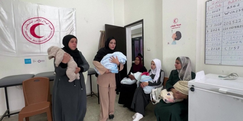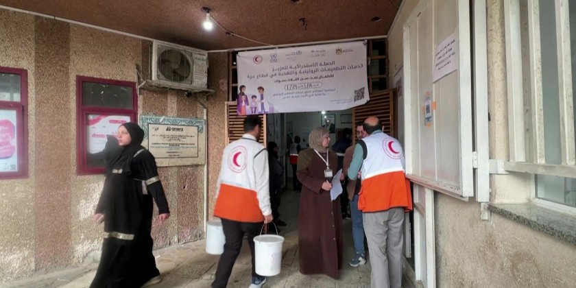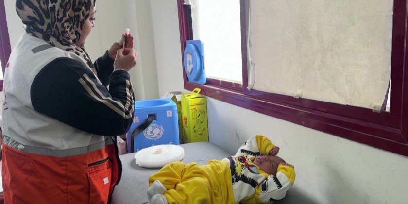 Palestinian Red Cresecent Society staff administer vaccines to children as the second phase of a catch-up vaccination campaign in Gaza kicks off from 18 to 29 January. The goal of the campaign is to vaccinate children under the age of three against various diseases in Gaza. The campaign is being conducted in collaboration with UNICEF, the UN agency for Palestinian refugees and the health ministry in Gaza under Hamas control.
