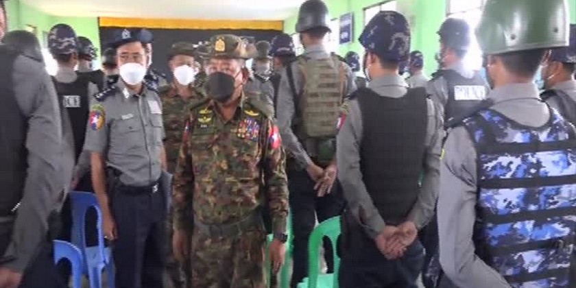 Member of the State Administration Council [SAC] Union Minister for Home Affairs Lt-Gen Soe Htut met with members of security forces and the police force and their family members as well as departmental personnel.