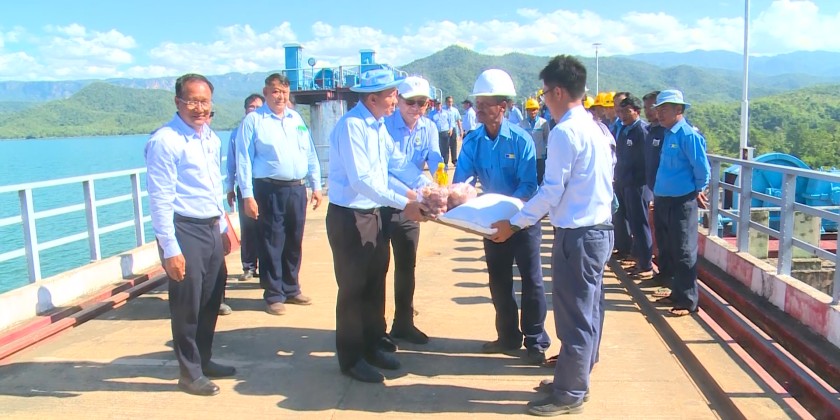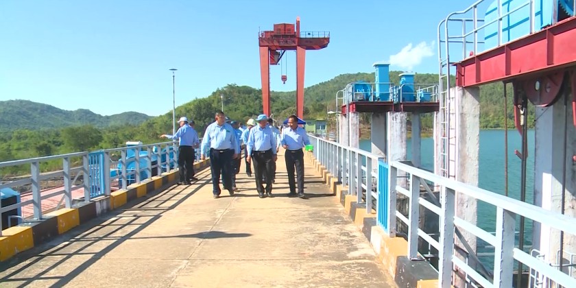 The Deputy Minister then inspected the structural condition of the concrete dam and earth embankment, the condition of the sluice gates, the operation of gate opening and closing, and the inspection gallery within the concrete dam. He also provided support materials to staff currently serving at the reservoir.