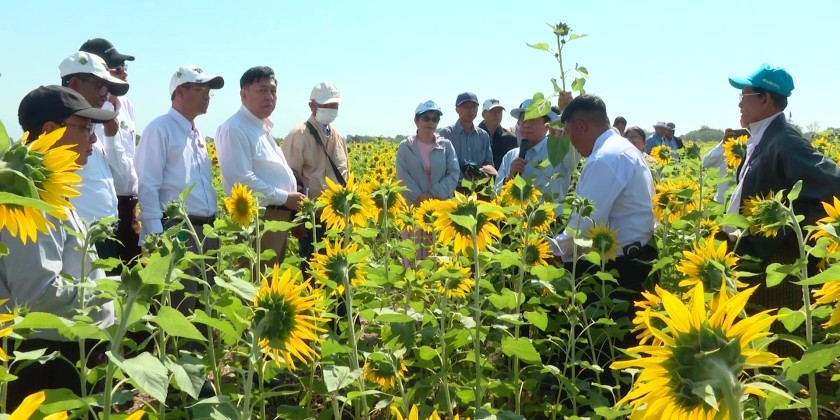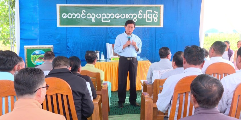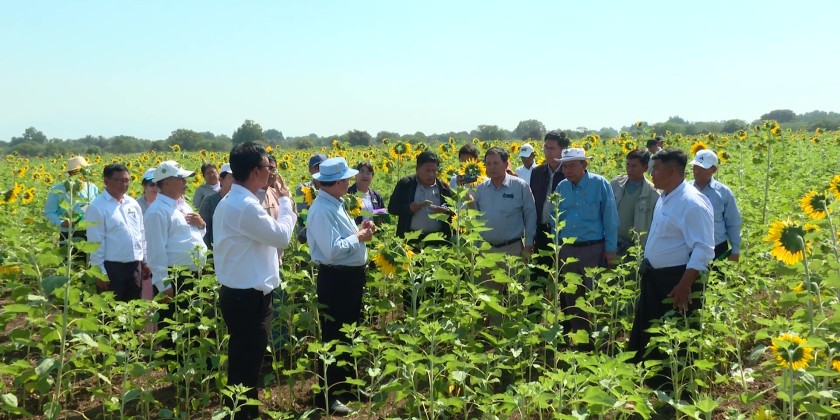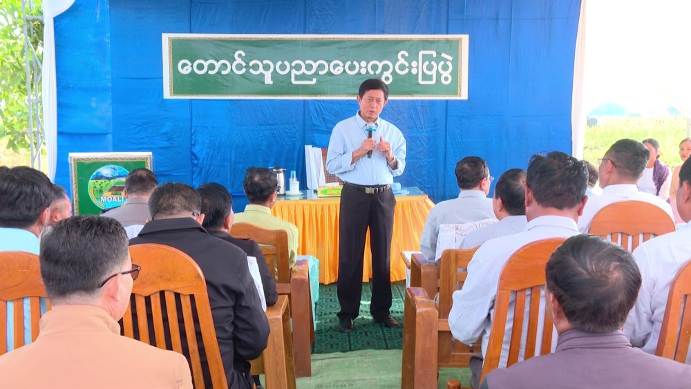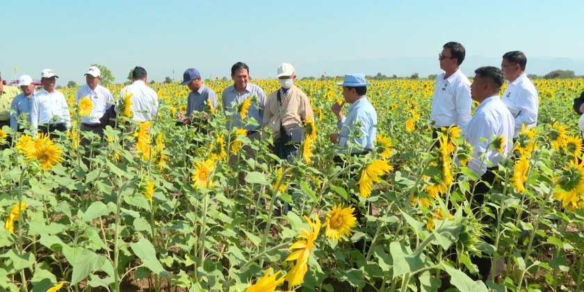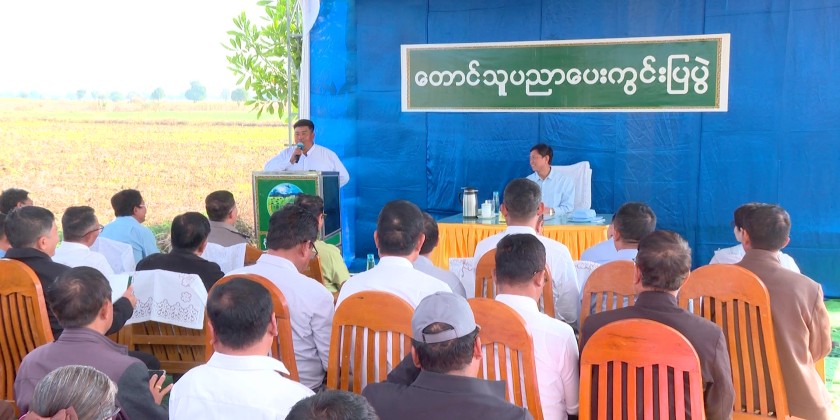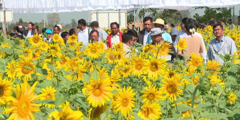 Deputy Minister for Argiculture, Livestock and Irrigation Dr. Tin Htut attended the demonstration ceremony of upgraded seedbeds of Sin Shwe Kyar-2Sunflower in Kanbe village tract of Yamethin Township, Mandalay Region on 20th January.