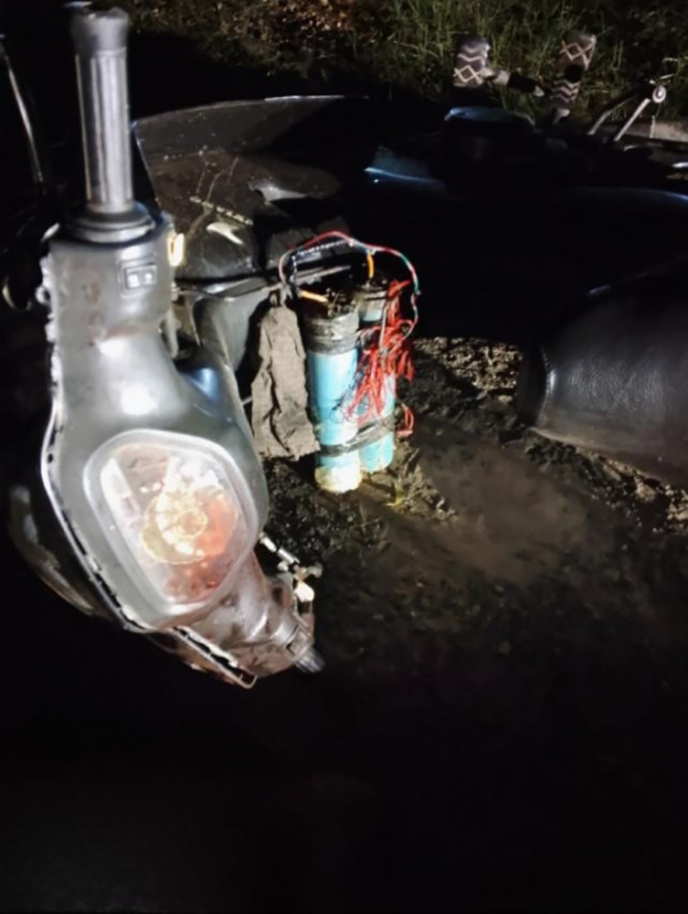At around 6 a.m. on October 8, security personnel stopped a motorcycle coming from Nyaung-U toward Bagan to conduct a routine check. However, the male rider did not stop and attempted to flee. Security forces fired warning shots, causing the motorcycle to lose control and stop. Upon inspection of the motorcycle, they discovered two homemade mines made from PVC pipes hidden under the seat. The terrorist rider was found dead from injuries sustained by small-arms fire.
