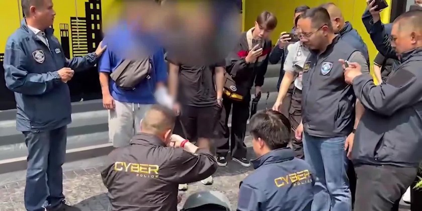 Police arrested two Hong Kong men at a prominent shopping mall in Bangkok, finding them carrying devices to send short messages with fraudulent links to scam victims.