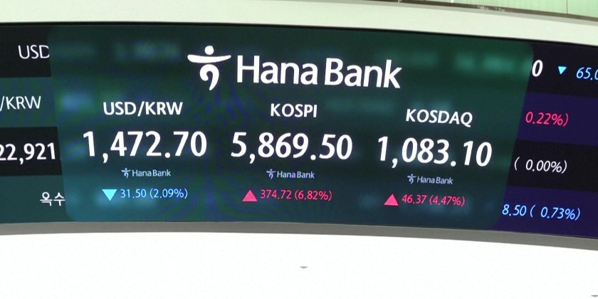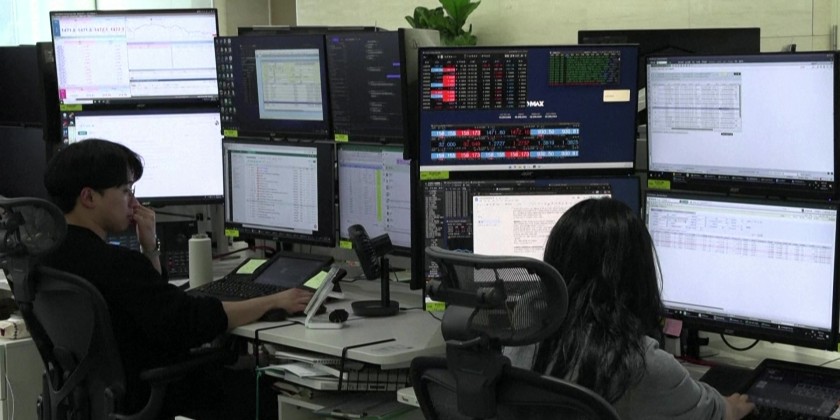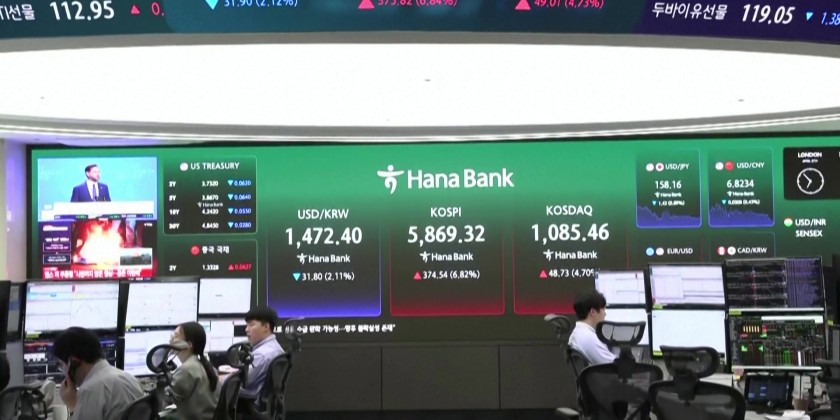 South Korea's Hana Bank trading floor as Asian stocks soar after US President Donald Trump announced a two-week ceasefire with Iran, with talks during the interim period mediated by Pakistan.