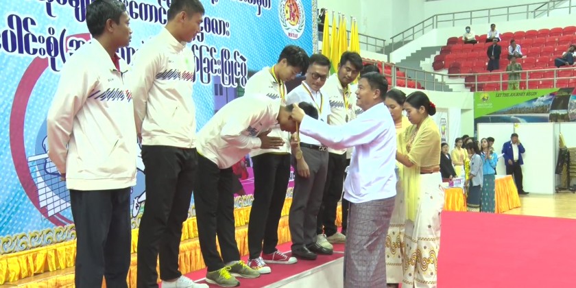 After the matches, the prize awarding ceremony was held and deputy ministers, Union Minister U Min Thein Zan and SAC members presented medals and cash of honor to the individual players and the SAC Chairman’s Cup to the winning Sepaktakaraw team of the Ministry of Home Affairs.