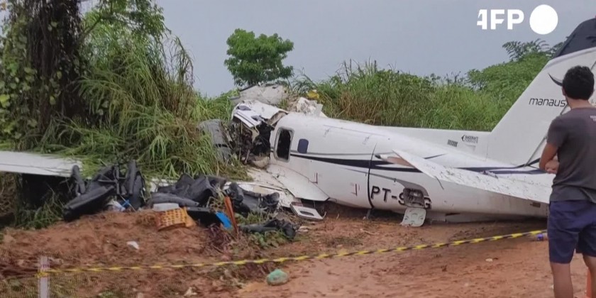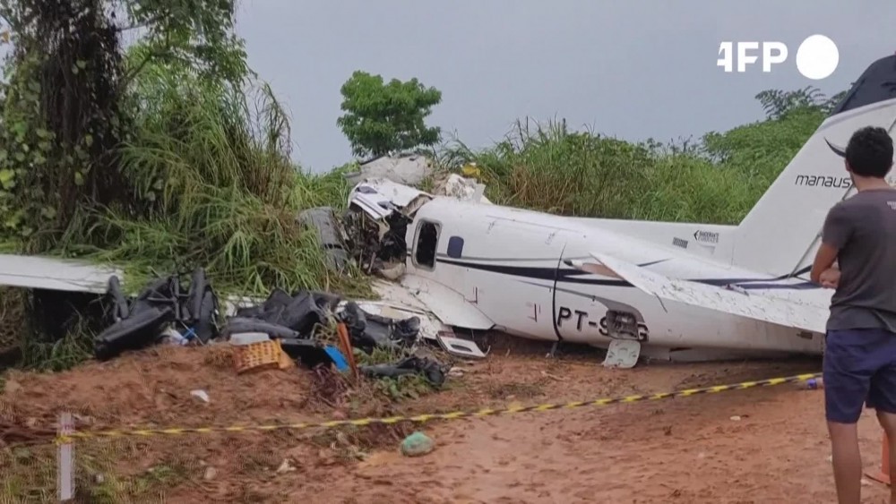 The plane was flying from Campinas, and broke up mid-air and crashed at around 10:30am in the mining town, according to the firefighters. The coffins of some of the 14 people who died in a plane crash near a remote town in the Brazilian Amazon have been evacuated at the Manaus Air Base to be identified while an investigation begins.