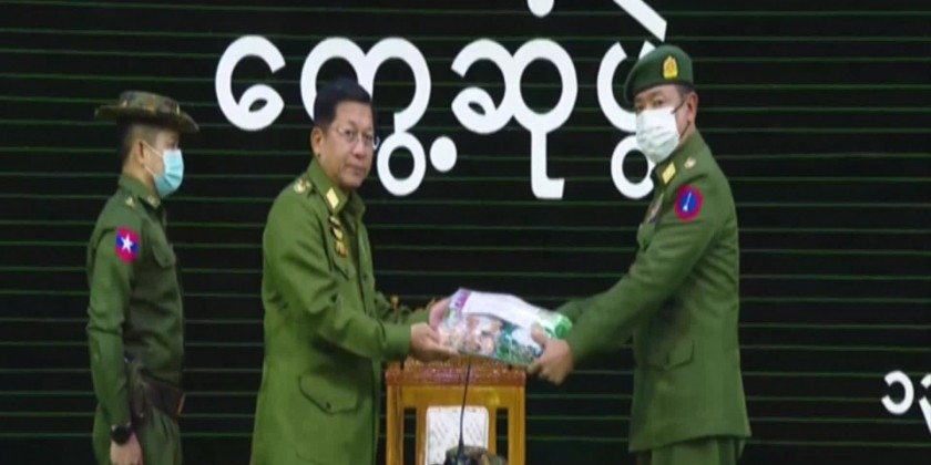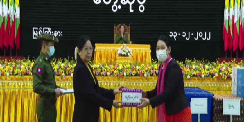The Prime Minister and wife later presented foodstuff for the Tatmadawmen and families and cash assistance for the mother and child welfare association. At the meeting hall of the northern command, the Commander reported on the security, rules of law and stability in the region and the Prime Minister gave instructions for regional stability.