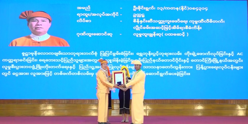 This was followed by ceremonial ribbon cutting event to officially inaugurate the exhibition booths in commemoration of the 78th Anniversary of Shan State Day. The exhibition featured the various booths on ethnic traditional foods, departmental exhibition and MSME products. Then, the awarding ceremony of presenting certificates of honour took place at the City Hall.