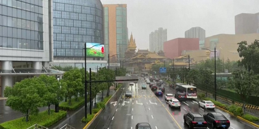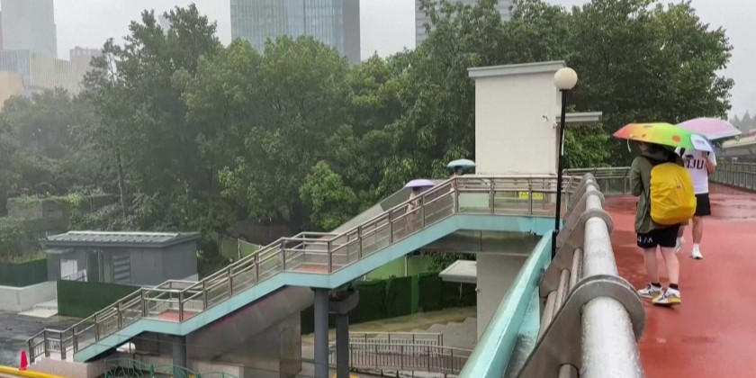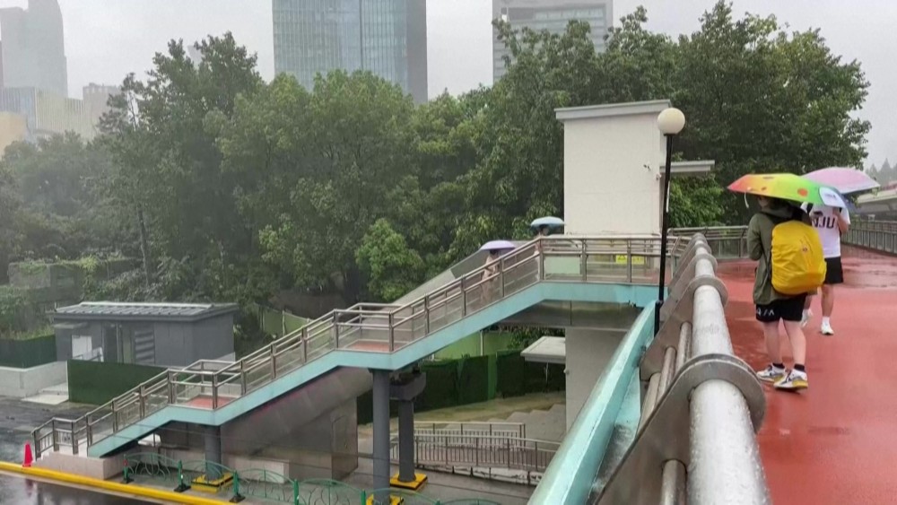 Almost a third of flights from Shanghai's two international airports have been cancelled. More than 1,900 temporary shelters have been set up across the city. The Shanghai Central Meteorological Observatory upgraded an earlier yellow rainstorm alert to orange on Wednesday afternoon.