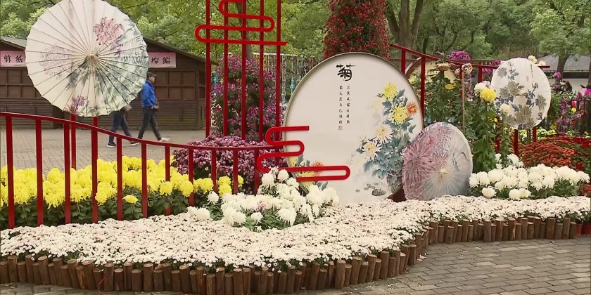 Shanghai welcomes the golden time of chrysanthemum appreciation. In Gongqing Forest Park, visitors can enjoy a visual feast of colourful chrysanthemums. It features more than 500 varieties and 180,000 pots of chrysanthemums in various styles. The section of "Mountains and Chrysanthemum Charm" shows the classical charm of traditional famous flowers vividly.