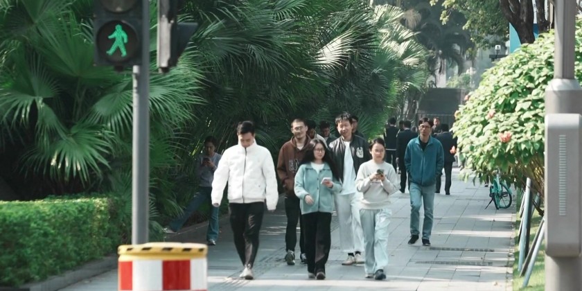 In Shenzhen, along a stretch of sidewalk are 5G-powered streetlights which are mounted with LED screens, cameras, and microphones. The poles can give out voice alerts when there is illegal parking or littering, and can keep an eye on traffic, air quality, and noise levels.