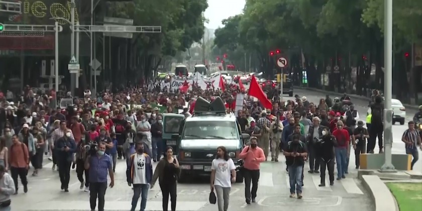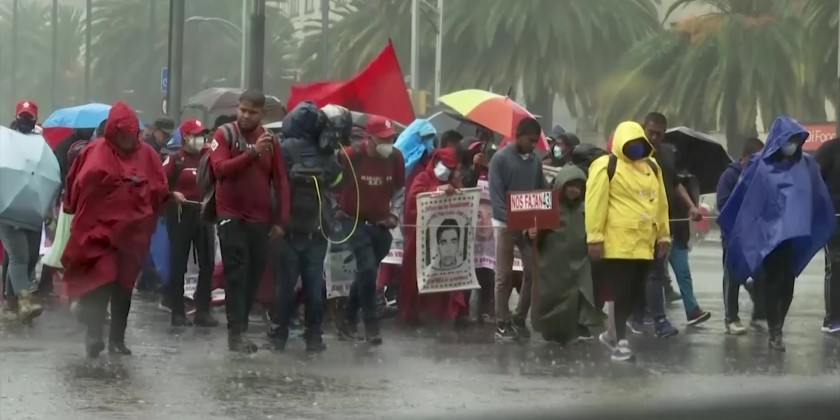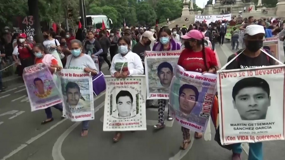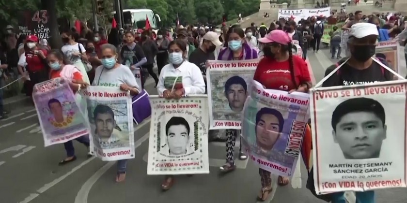 The role of the army in the students' disappearance has long been a source of tension between the families and the government. The families of the 43 missing students marched in Mexico City with a couple hundred other people carrying posters of their children's faces as they have on the 26th of every month for years. The motive for the police action remains unclear eight years later.