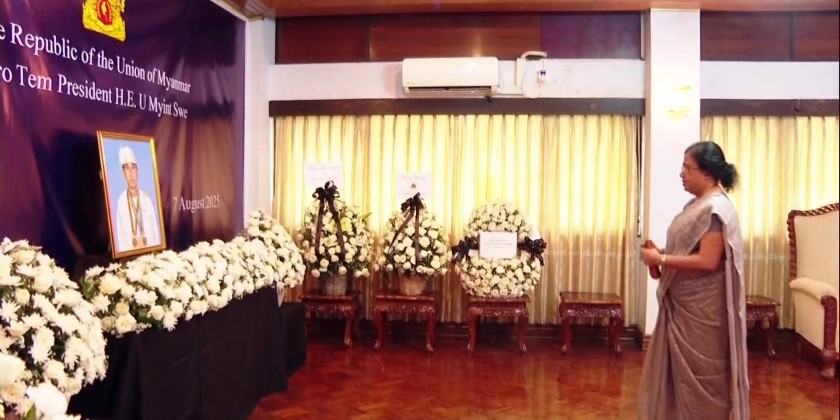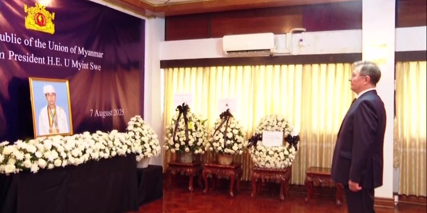 The Ambassadors and Heads of Mission to Myanmar signed the Book of Condolence opened at the Ministry of Foreign Affairs on Sagawah Street of Yangon, to honour the memory of Pro-Tem President U Myint Swe, who passed away on 7 August 2025.