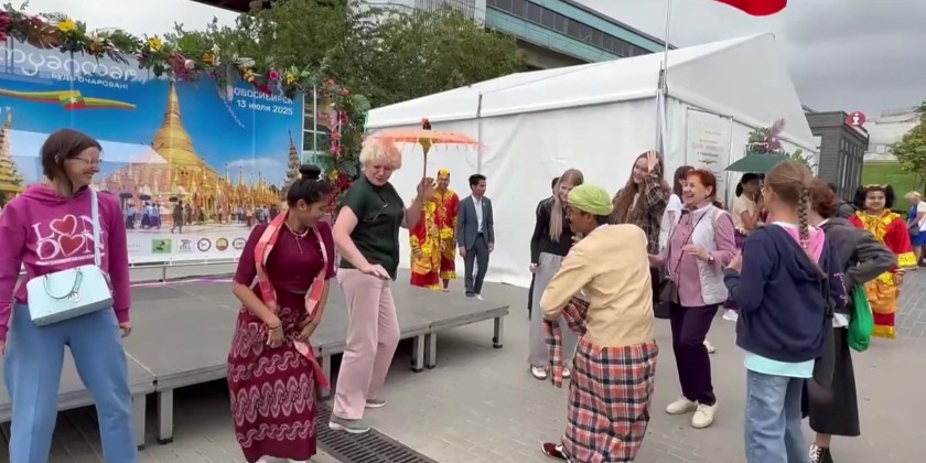 On the final day, July 13, Russian citizens and residents of Novosibirsk showed exceptional interest in the Myanmar tourism promotion booth organized by the Ministry of Hotels and Tourism. Visitors sampled traditional Myanmar cuisine, inquired about Myanmar's travel destinations and attractions, enthusiastically enjoyed traditional Myanmar cultural dances, and even participated themselves.