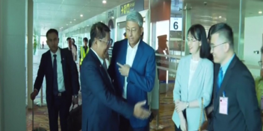 The delegation was welcomed at the Yangon International Airport by Mr. Chen Hai, Ambassador of the People’s Republic of China to Myanmar and officials from the Ministry of Foreign Affairs.