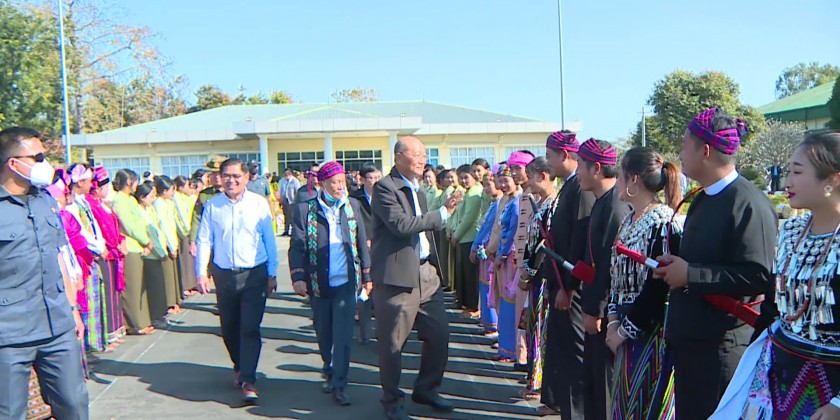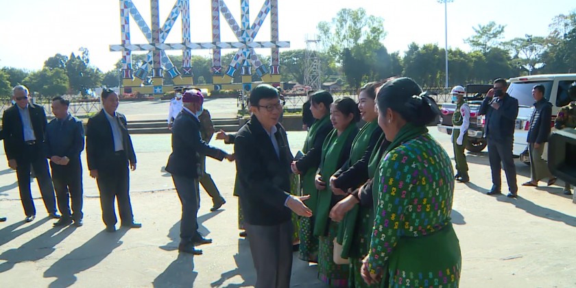 Afterward, the SAC members, Union Ministers, chief ministers, commander and senior Tatmadaw officers, chief justice of state high court, state ministers and officials visited Manaw ground in Sita-pu Ward, cordially greeted with the chairman of officials of Myanmar Kachin national races culture association and posed for documentary photo in front of Manaw mansion and in the Maw ground.