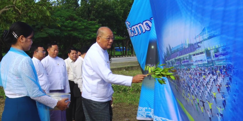 Union Minister for the Ministry of Sports and Youth Affairs and the Ministry of Hotels and Tourism Jeng Phang Naw Taung attended and delivered remarks. First, the Union Minister stated that walking is the best medicine for each individual to keep the entire nation healthy and strong.