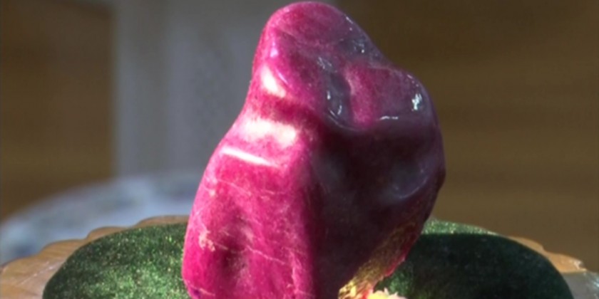The 2,789.25-carat ruby donated by the Tatmadaw to the state has a hardness of 9 and its density is 3.99. The colour is red with purplish tint and it is produced from Mogok Gem Land and it is a significantly large piece of ruby produced from Mogok gems land.