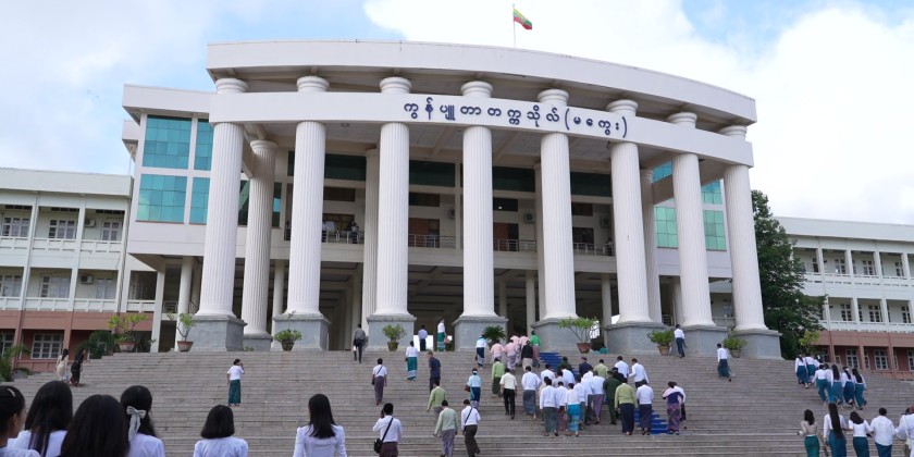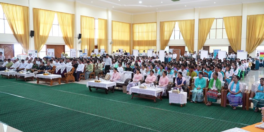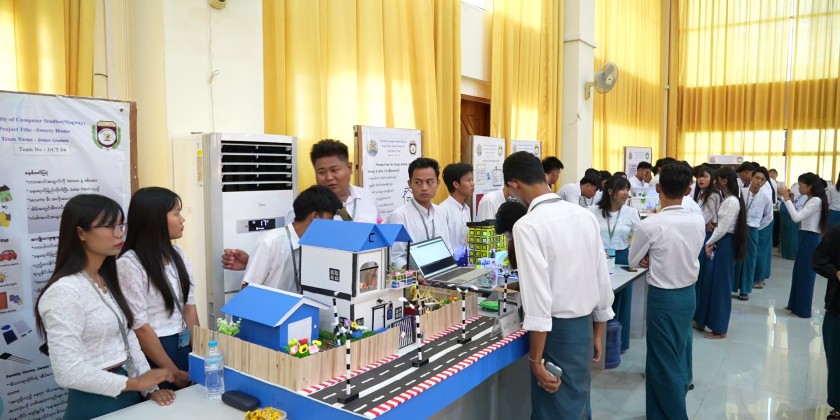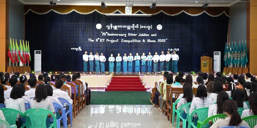 Next, the "6th ICT Project Competition & Show, 2025" was held at the university's convocation hall. Students performed a song about science and technology. Chief Minister U Tint Lwin then delivered an opening speech, in which he spoke at length about the university's history, the number of undergraduate, graduate and diploma students, and the benefits of holding the ICT Project Competition & Show.
