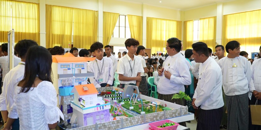 The students then performed a dance to a song after which the Chief Minister presented them with a cash award. After the ceremony, Chief Minister U Tint Lwin, region ministers, and guests toured the university to view and encourage the participants in the competition.