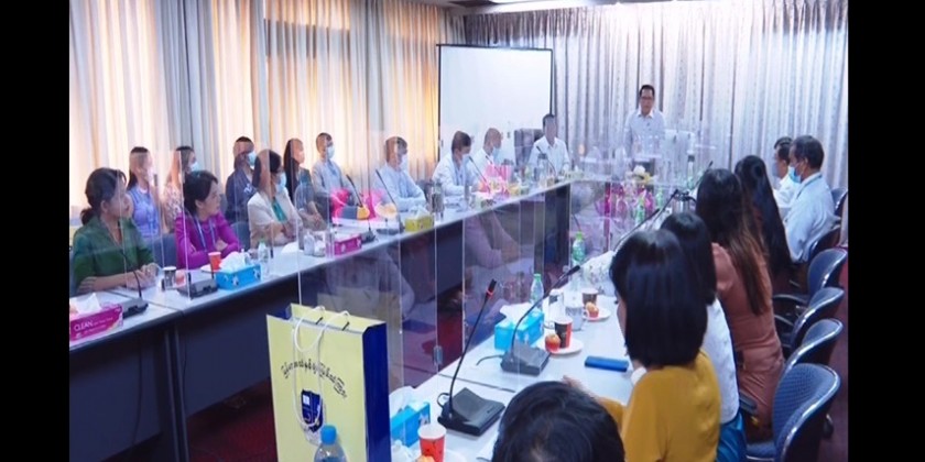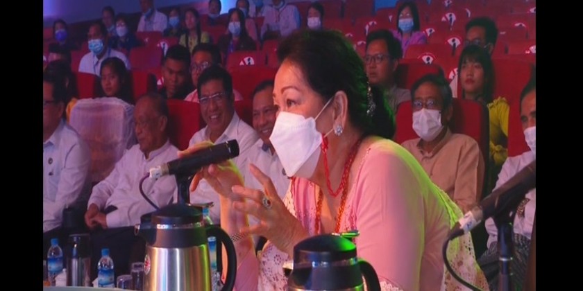 The Union Minister cordially met with the Chairman and officials of Myanmar Music Association (Central), judges, presenters and contestants from Regions and States and production team.