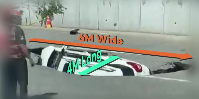 The vehicle almost completely sank into the hole and it had fallen into a sinkhole about six meters wide, four meters long and 2.5 meters deep. The vehicle was towed right after the accident but two out of four lanes were closed for more than ten hours for investigations.
